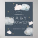 This cute gender neutral baby shower welcome sign poster features flying bunnies / rabbits / hares with faux gold glitter stars and fluffy clouds on midnight blue / navy blue background. Personalize it for your needs. You can find more bunny / rabbit / hare products at my store.