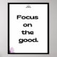 Plongez-vous dans la positivité avec cette affiche de motivation captivante : "Focus sur le bien." Dans ces mots simples mais profonds se trouve un rappel puissant pour changer votre perspective et embrasser l'abondance de bonté qui vous entoure. Ornée d'une élégante typographie sur fond d'images encourageantes, cette affiche sert d'oasis visuelle d'optimisme dans un monde souvent obscurci par la négativité. Accrochez-le dans votre espace de travail, votre bureau à domicile ou tout espace où vous cherchez l'inspiration, et laissez son message insuffler à votre environnement de positivité. Laissez cette affiche être votre lumière directrice pendant que vous naviguez dans les défis et les revers de la vie. Plutôt que de vous attarder sur le négatif, mettez votre accent sur les innombrables bénédictions, opportunités et joies qui existent à chaque instant. Embrassez le pouvoir transformateur de la gratitude et de la pleine conscience en cultivant un état d'esprit enraciné dans l'appréciation et la positivité. A chaque coup d'oeil sur cette oeuvre d'art inspirante, vous serez rappelé votre capacité à trouver beauté et bonté dans les plus petites choses. Tags : Poster de citations motivationnelles, Typographie Inspirationnelle Art, Rappel Positif, Infusion Optimisme Inspiration, Gratitude Décor, OEuvre Murale Aspirationniste, Esprit Motivation Rappel, Embrasser le Décor Positif, Poursuivre vos rêves Artwork, Autonomisation par l'optimisme, Déplacer votre perspective Inspiration, Cultiver le Bonheur Inder, Trouver la bonne motivation, Inspirer des vibrations positives Décor, Choisir la joie Inspiration