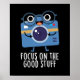 Focus On The Good Stuff Positive Camera Pun dispose d'un appareil photo mignon nous rappelant de nous concentrer sur les bonnes choses. Un cadeau de jeu de mots parfait pour la famille et les amis qui aiment les mignons puns de caméra.