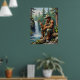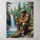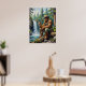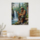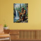 Cette oeuvre d'art imaginative représente Bigfoot, un doux géant d'un casquette cowboy, qui agit comme gardien d'un petit cerf de Virginie niché à côté de lui. Ils sont situés près d'une cascade étincelante dans une forêt dense et verdoyante. L'impasto épais et expressif crée une texture tangible dans la fourrure, le feuillage et l'eau courante, donnant un sentiment de coexistence pacifique dans la nature.