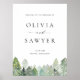Conçu avec une forêt à feuillage persistant enneigée en aquarelle, ce panneau d'accueil ajoute une touche naturelle et calme à votre mariage d'hiver. Les arbres enneigés et les couleurs douces créent une atmosphère rustique et propre qui convient à des sites de montagne ou à des milieux boisés. Il est facile de personnaliser avec vos noms et votre date de mariage. Que vous planifiez une petite cérémonie ou une grande célébration, ce design vous aide à donner le ton de votre journée.