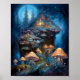 Affiche Forêt enchantée Champignons Château Imaginaire Art