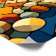 Une image abstraite d'une forêt avec une rivière qui la traverse. Principalement vert mais aussi orange