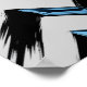 Ce design est composé d'un arrière - plan gris clair entrecoupé de larges touches de brosse noire en diagonale, créant un sens du mouvement et du flux. Ces traits sont des formes bleues en trois dimensions brillantes, ressemblant à des pièces de verre poli ou de cristal. Chaque forme s'aligne sur l'inclinaison des traits noirs, améliorant le rythme visuel de la composition. Le contraste entre les formes bleues lisses et réfléchissantes et les contours rugueux et dynamiques des touches de brosse crée un mélange saisissant de modernité et d'énergie.