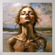 Fragments "Ophira" de la mer. Cette image capture un moment où la forme humaine se dissout dans les textures de l'eau et de la terre. Il parle de transformation, de la beauté de l'impermanence, et de la puissance brute de la nature. Une femme perdue dans l'étreinte de la mer, son visage leva vers le soleil doré, se dissolvant dans les éléments. Cette oeuvre illustre le délicat équilibre entre sérénité et érosion.