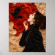 A stunning piece of surreal dark art featuring a gothic woman in a moment of freedom, accompanied by a mystical black raven. This artwork uses a unique 3D paper-cut style (quilling effect) with deep red swirling clouds and intricate textures. Perfect for fans of dark fantasy, gothic home decor, and avant-garde paper art. This poster adds a touch of mystery and elegant drama to any living space or office.