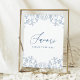 Faites de votre douche nuptiale une expérience inoubliable avec cet élégant poster de Fête des mariées Florale de la Chinoiserie bleue française Favor. Cette affiche d'inspiration vintage présente un superbe design de chinoiserie florale bleue qui apportera une touche de sophistication à votre événement. Ce poster distinctif impressionne vos invités avec ses détails complexes et son motif d'inspiration française. La palette bleue douce lui donne un look raffiné et romantique qui célèbre la journée spéciale de la mariée. Placez-le sur un chevalet près des faveurs que vous offrez à vos charmants invités.