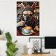 Commencez votre journée par un rire : cette affiche présente un Bulldog français sous forme humaine, revêtu d'une chemise à flanelle verte et blanche, de bretelles et de verres épais. Il est à mi-latte, derrière un bar à café branché, montrant un accent de barista sérieux. Son expression dit qu’il a déjà eu trois clichés de "Bark Roast". Des noms de boissons de tableau noir ridicule complètent la scène. Un choix parfait pour les cuisines, les cafés ou tous ceux qui aiment les chiens, le café, et les pièces murales excentriques.