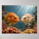 Two vibrantly colored fish face each other among a lush coral reef. Sunlight beams gently penetrate the water, highlighting their intricate patterns.