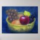 Fraîche ! ! ! Deux pommes, une orange, un citron et deux grappes de raisins sont rassemblées dans ce bol en laiton. Ce magnifique bouquet de fruits frais égayera toute cuisine. Il s'agit d'une copie d'une peinture à l'huile de l'artiste Krishna Sadhu. Vous pouvez contacter l'artiste à l'adresse aamikrishna@gmail.com si vous souhaitez qu'une peinture originale vous soit faite.