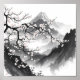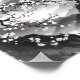 Cette pièce capture la sérénité d'un paysage japonais, mêlant les techniques traditionnelles de lavage à l'encre sumi-e à de délicates éclaboussures de couleur. Un majestueux mont Fuji enneigé se dresse au loin, noyé dans des montagnes brumeuses. Au premier plan, les branches sombres et grillées d'un cerisier sont en pleine floraison, avec des fleurs roses et blanches douces qui ajoutent un contraste éclatant aux tons gris monochromatiques du paysage. La scène évoque un sentiment de paix, de tranquillité et la beauté éphémère de la nature.