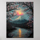 Affiche Fuji Sunset Cherry Blossom Mountain Art