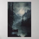 Affiche Full Moon Mountain Lake Art Dark Woodland Moody