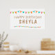 Drapeaux de bunting amusants et colorés Bonne bannière d'affiche de fête d'anniversaire avec un nom. Un design d'anniversaire mignon avec des drapeaux de fête en vert, rouge et bleu et un nom - personnalisez l'affiche avec votre nom et faites votre propre décoration de fête amusante. Modifiez le texte Joyeux anniversaire si vous le souhaitez. La fille d'anniversaire ou un garçon et les invités adoreront cette jolie bannière de fête.
