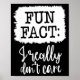 Affiche Fun Fact I Really Don’t Care, Sarcastic Quotes Fun