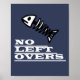 Cool et drôle No Left Overs Fish Skeleton Poster à ajouter à votre collection de décors. Un cadeau cadeau/cadeau cool pour tous ceux qui aiment les objets de design personnalisés, les images positives, les plaisanteries, le plaisir, les animaux, etc.