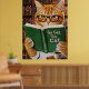 Affiche Funny Adorable Reading Cat Art Coffee Tabby Cat