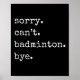 Affiche Funny Badminton Player Sorry Cant Badminton Bye