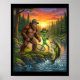 Affiche Funny Bigfoot Fishing Mens Alien Sasquatch Fishing
