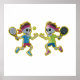 Affiche Funny Cartoon Skeletons Playing Padel Tennis – 3D