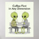 Start every day on the right note with this fun and quirky poster featuring two aliens enjoying a coffee break. With the playful phrase “Coffee First in Any Dimension,” this design blends sci-fi charm with everyday humor, making it perfect for coffee lovers who appreciate a cosmic twist. This poster is a stellar reminder that coffee always comes first—no matter the galaxy.