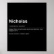 Affiche Funny Definition Quote For The Name Nicholas _