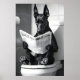 Affiche Funny Doberman Bathroom Print, Dog Reading