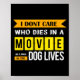 Funny Dog & Puppy Lover Shirts I Don't Care Who Dies In A Movie - Black, Small