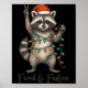 Affiche Funny Feral And Festive Raccoon Santa Hat Retro Ch