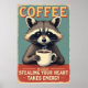 Affiche Funny Raccoon Coffee Art