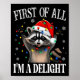 Affiche Funny Raccoon First Of All I'm A Delight Merry Chr