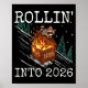 Affiche Funny Raccoon Rolling Into 2026 Retro New Year 202