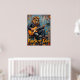 Ce tableau saisissant capture un lion majestueux, orné de lunettes de soleil et d'une veste en cuir, livrant son "hymne grunge" sur une guitare électrique. Elle est perchée en toute confiance sur une corniche en bois, entourée de feuilles d'automne éparpillées et d'une toile de fond en bois. L'utilisation par l'artiste d'un brushstrokes texturé et audacieux met l'accent sur l'énergie brute de la scène et l'attitude "Rock or Die", donnant vie à ce concert inattendu.