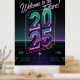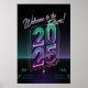 Admirez le look visionnaire cosmique avec cette affiche sur le thème futuriste, qui présente un texte brillant "2025" et un décor stylé et serein. C'est un mélange saisissant de teintes néon et d'art de pointe.