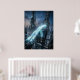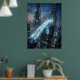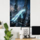 A striking futuristic cityscape featuring a glowing energy bridge connecting towering skyscrapers above a neon-lit metropolis. The scene captures advanced technology and dynamic motion, with light trails flowing through the skyline in a cinematic cyberpunk atmosphere. Perfect for modern interiors, gaming setups, and anyone drawn to futuristic architecture and high-tech urban design.