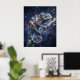 A mesmerizing galactic chameleon rests on a glowing cosmic branch, its skin shifting through vibrant galaxy colors and luminous nebula gradients. Fine scale details shimmer with starlight, creating a dynamic and visually rich surface. Its glowing eyes move independently, enhancing its unique and captivating presence. Set against a soft cosmic backdrop, this artwork blends detail, color, and fantasy, making it perfect for modern interiors, creative spaces, and collectors of bold, visually striking wall art.