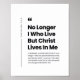 Apportez un puissant rappel de foi dans votre maison avec cet élégant poster du verset biblique Galates 2:20. Avec les mots significatifs « Christ vit en moi » dans une mise en page épurée et minimaliste, ce design se concentre sur le cœur de l'évangile : vivre par la foi en Christ.