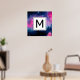 Une affiche monogramme avec un beau design abstrait en rose et bleu. Des étoiles blanches parsemèrent cette image du cosmos. Trippy et cool. Un carré blanc avec une bordure noire superposée avec votre premier monogramme à l'intérieur.