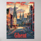 Découvrez la transformation magique de Gand au coucher du soleil grâce à notre illustration de voyage. Cette pièce enchanteresse capture l'horizon historique de la ville dans les tons chauds du coucher du soleil. Imaginez-vous le long des canaux pittoresques, où l'architecture ancienne reflète la lumière dorée, et la ville s'anime d'une beauté tranquille et intemporelle. Embarquez pour un voyage à Gand, où chaque soir se déroule une symphonie de couleurs et d'horizons historiques.