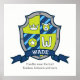 Blason de chevalier style monogramme W art nom affiche parfait pour la chambre d'un garçon ou la salle de jeux dans des nuances de vert, bleu, bleu marine, blanc et gris. Personnalisez avec le nom de votre enfant et la signification de son nom pour un touche vraiment personnalisée dans la chambre ou la nurserie de votre enfant, cet exemple est pour le nom Wade Dweller près du gué. Intrépide, chanceux et courageux. Impression d'affiche idéale comme cadeau pour un nouveau-né garçon, anniversaire de garçon, pour un baptême, une cérémonie de nomination ou une baby shower. Couronne unique, visage d'ours, lettre W et dessin graphique étoile et bouclier par Sarah Trett. www.sarahtrett.com pour www.mylittleeden.com