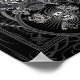 Une puissante chouette ailée s'envole au-dessus d'un crâne orné de clés. Le hibou est encadré par des motifs tourbillonnants et complexes, des chaînes et une croix celtique. La palette de couleurs monochromatiques ajoute à l'atmosphère dramatique de l'image.