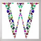 The LETTER 'W' made with pictures of Gemstones in All shapes and colors, such: oval Citrine, baguette et taper Diamonds, Heart shaped Emerald, Ruby, Dananite, and more...