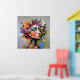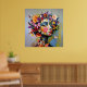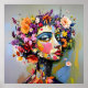 "Géométrie Florale" - Un Portrait Botanique. Une rencontre complexe de design en mosaïque angulaire et d'abondance florale luxuriante définit ce travail. Le regard perçant de la femme contraste avec la douceur des fleurs, créant un équilibre entre précision et chaos. Une palette vif de roses, jaunes, violets et rouges met en évidence le lien entre la structure et l'organique, donnant un portrait moderne et inoubliable.