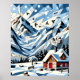Suis abstraite pinte de montagne avec un cabine et fumée de sa cheminée sous la neige