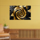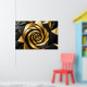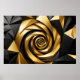 Impressionnant art mural abstrait avec une spirale dorée aux formes géométriques noires audacieuses. Parfait pour les intérieurs modernes, la décoration luxueuse et les amateurs de design contemporain.