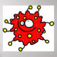Une jolie créature de germe bactérienne rouge sur une affiche.