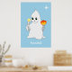 Affiche Ghost & Citrouille d'Halloween mignon sur bleu cla