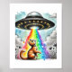 Un chaton gingembre mignon accueille un OVNI qui balaie les poutres arc-en-ciel d'aquarelle dans un pré fleur sauvage imaginaire science-art L'art généré par IA