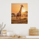Une girafe élégante se dresse haut sur un coucher de soleil ambre dans la savane, son corps formé de mailles de cuivre complexes, de treillis métalliques tissés et de lignes sculpturales élégantes. Des reflets chauds de bronze et d'or rosé scintillent sur la silhouette allongée tandis que des herbes dorées et des acacias lointains créent un paysage calme et luxueux. Cette œuvre d'art raffinée sur la faune sauvage combine une métallurgie moderne avec une beauté naturelle. Parfaite pour les grands espaces muraux, les bureaux, les intérieurs contemporains et les collectionneurs qui aiment les décors uniques et spectaculaires.