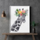 Affiche Girafe noir et blanc avec couronne de fleurs anima